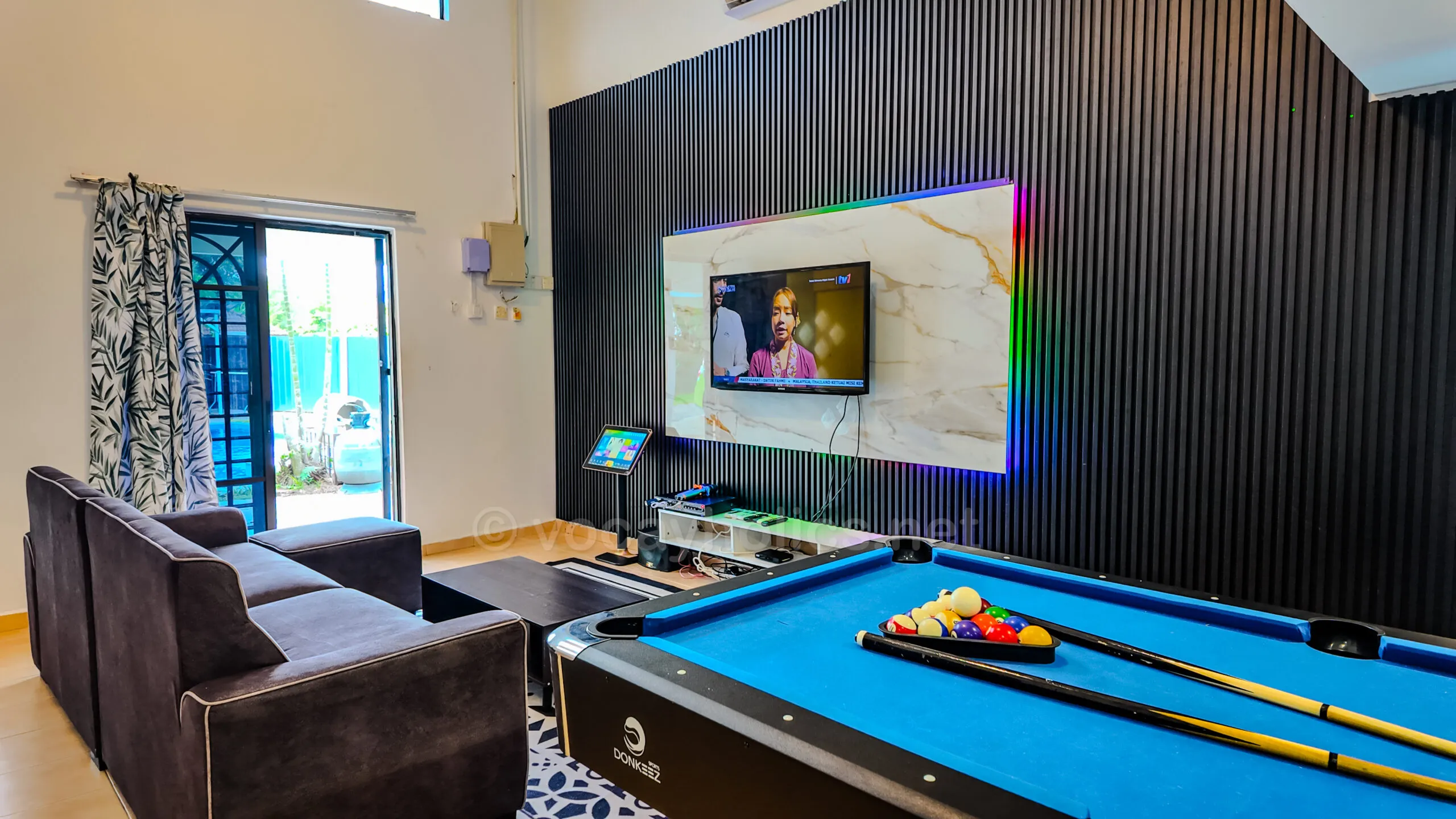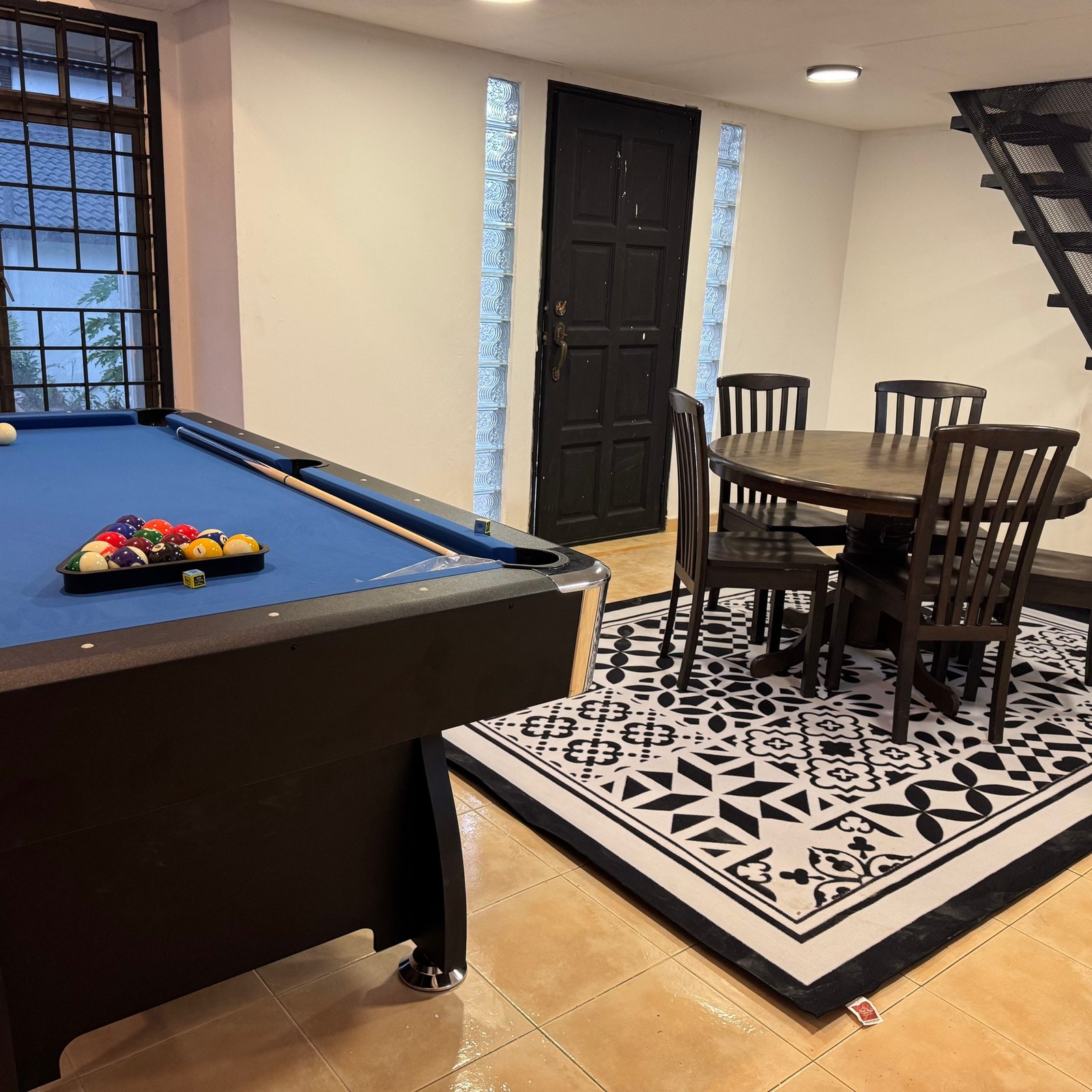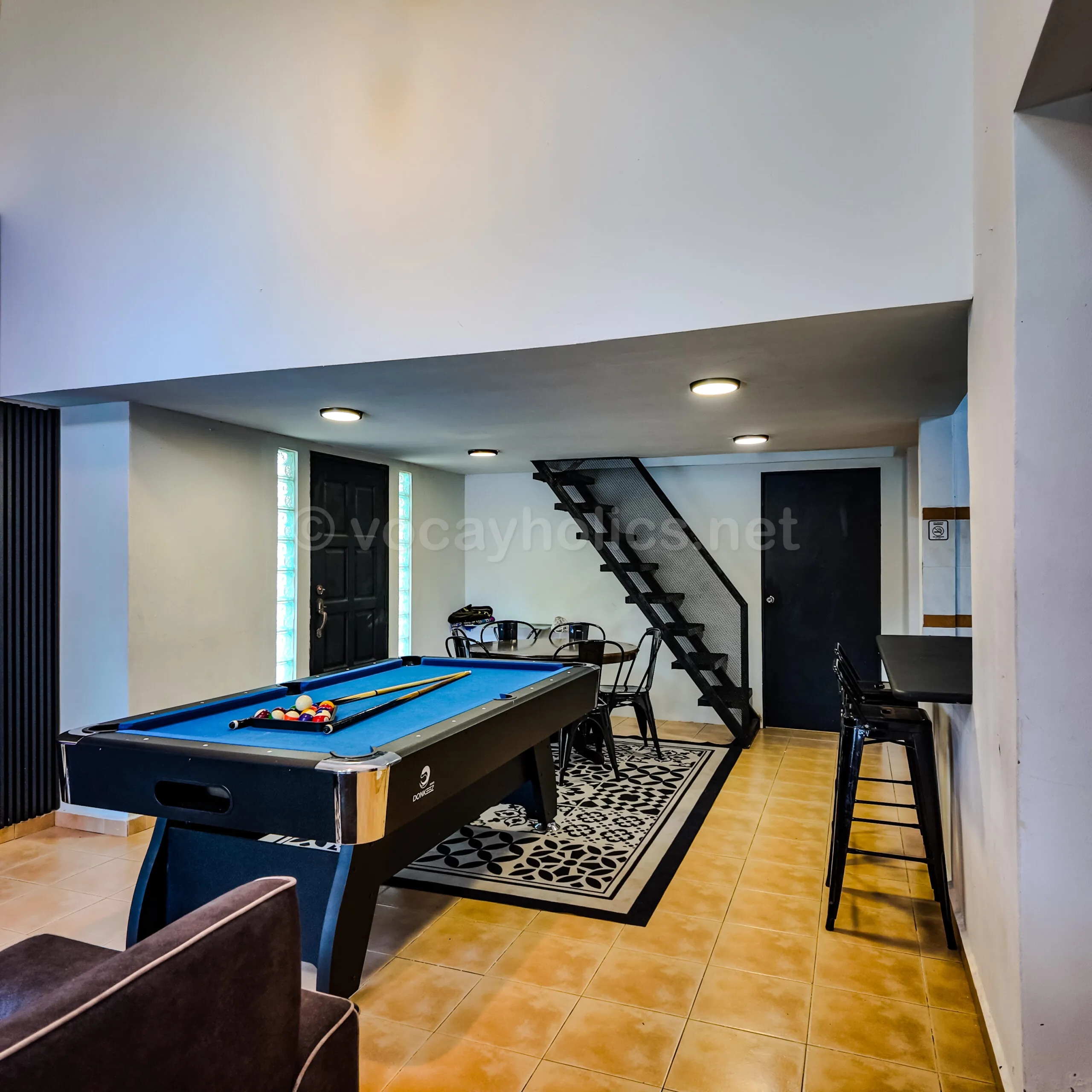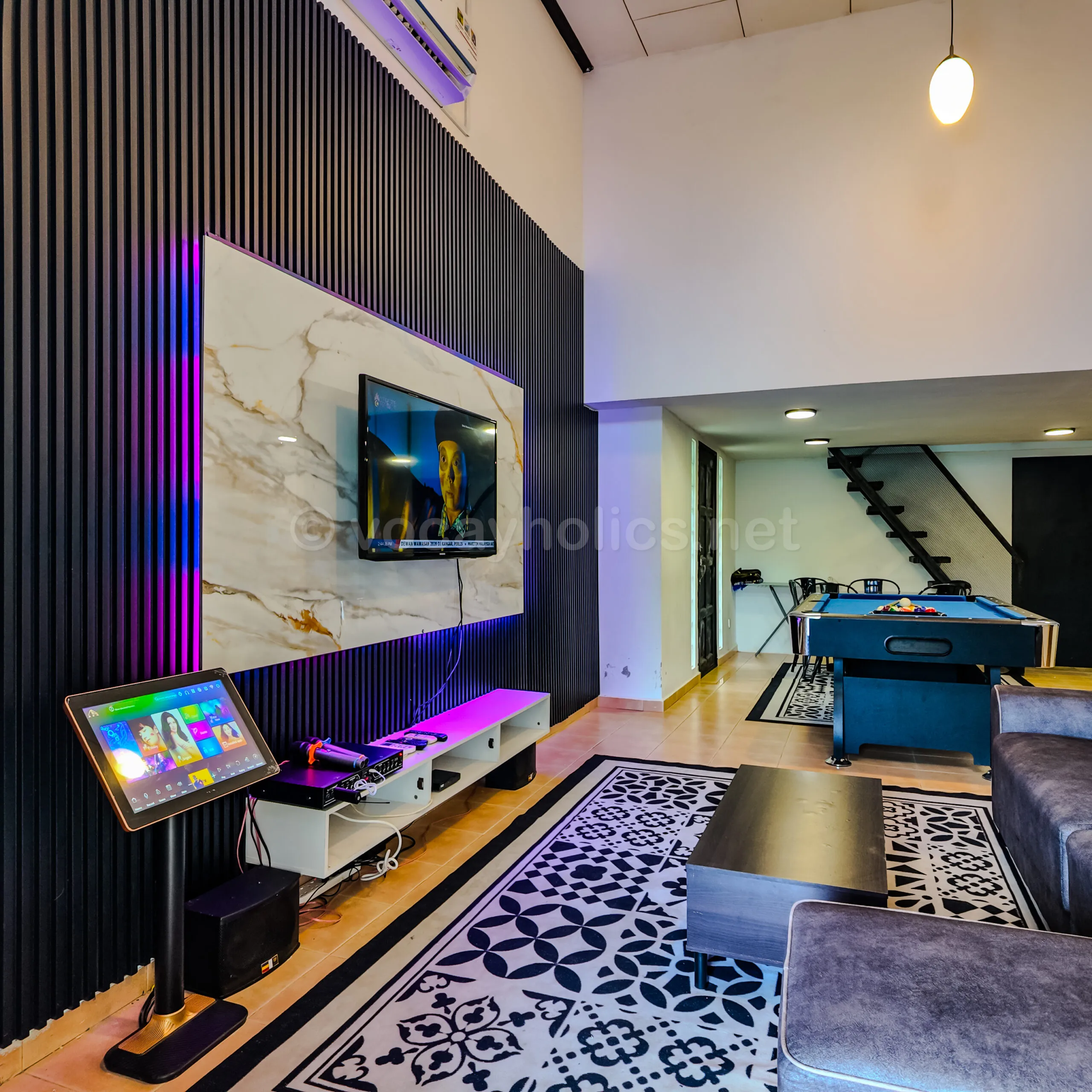 Our villa has 6 bedrooms and 2 bathrooms. It also has a private swimming pool, a bbq pit, a pool table, and a karaoke system to make your stay more enjoyable. It is located in A Famosa Resort Melaka.