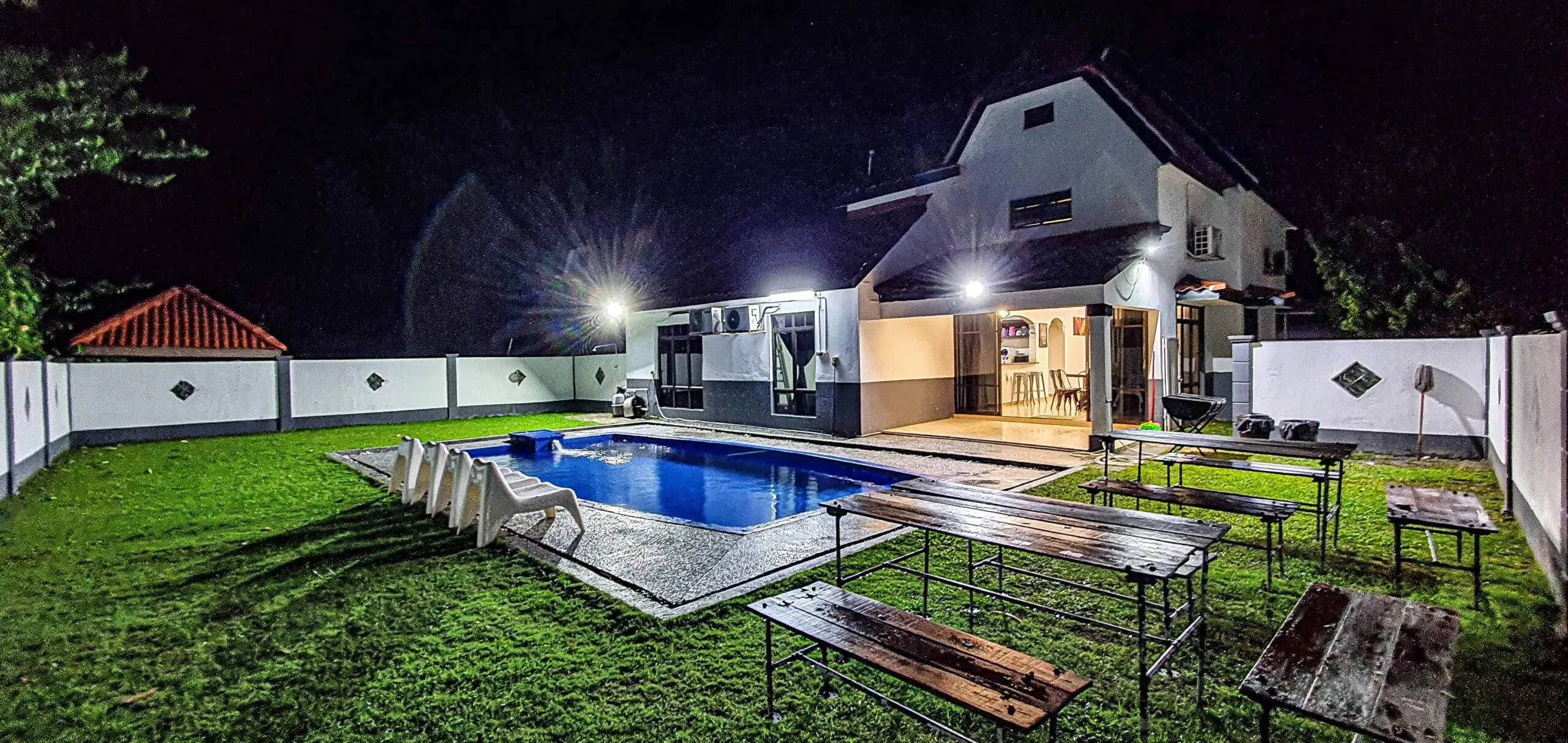 Our villa has 4 bedrooms and 2 bathrooms. It also has a private swimming pool, a bbq pit, and a pool table to make your stay more enjoyable. It is located in A Famosa Resort Melaka